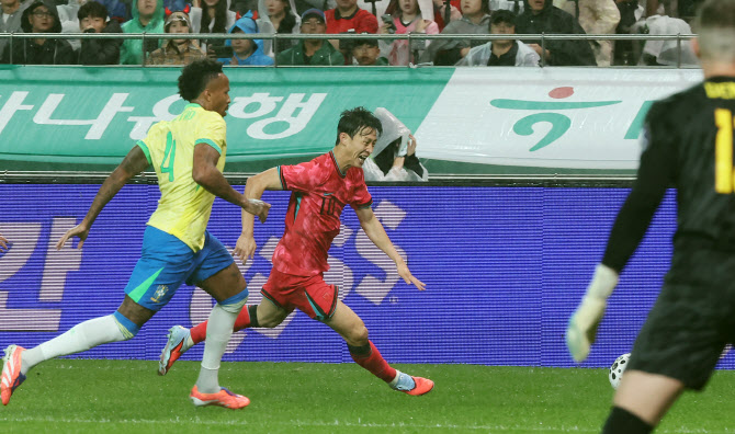 국제축구연맹(FIFA) 23위인 한국은 이번에도 브라질(6위)에 호되게 당했다. 점유율 41% 대 59%, 슈팅 수 4회 대 14회, 유효 슈팅 수 1회 대 7회 등으로 크게 밀렸다.