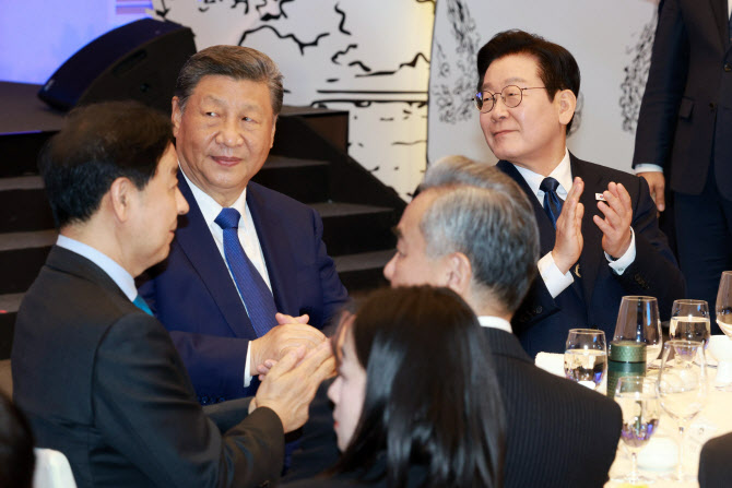 | | 이재명 대통령이 시진핑 중국 국가주석과 1일 경북 경주 소노캄에서 열린 국빈만찬에서 악수하고 있다. (사진=연합뉴스). |