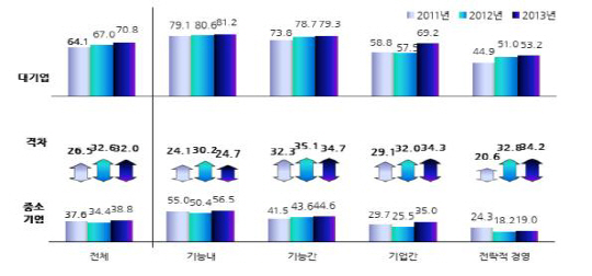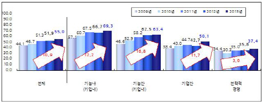 | △연도별 국내 기업 IT 활용지수. 미래창조과학부 제공 |