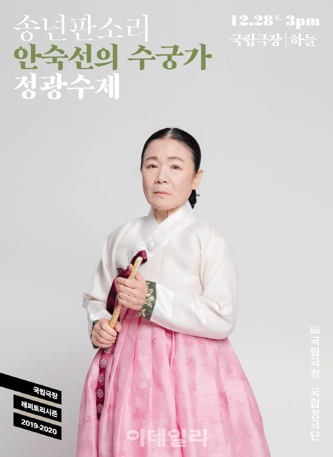 [이데일리 장병호 기자] 국립극장은 2019년 완창판소리 마지막 무대로 ‘송년판소리-안숙선의 수궁가 정광수제’를 오는 28일 서울 중구 국립극장 하늘극장에서 공연한다.