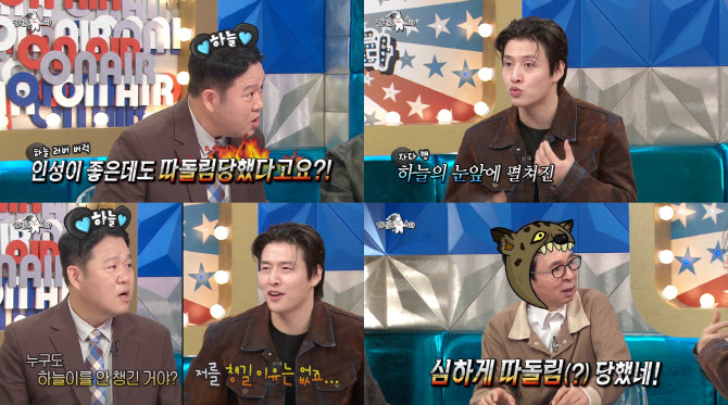 이를 듣던 김구라는 “유재석이 기부 쪽으로 많이 하지만 하늘이는 지인들한테 잘한다”면서 “인성이 좋은데 따돌림을 당했냐”라고 분노해 웃음을 안겼다.