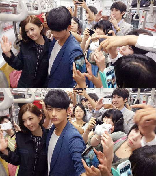 사진을 접한 누리꾼들은 “김유리 서인국 지하철 데이트 같다” “주군의 태양 촬영 장면인 듯” “이러다 스캔들로 검색어 1위 찍을 기세” 등의 다양한 반응을 보였다.