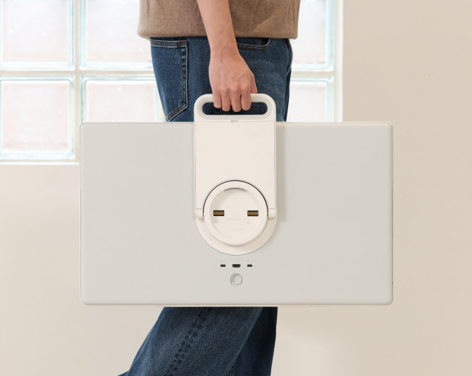 ‘더 무빙스타일’은 분리형 스크린과 스크린 뒷 부분에 손잡이 형태의 ‘일체형 킥스탠드’가 결합돼 공간 제약 없이 어디서든 사용할 수 있다.