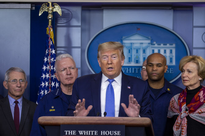 코로나19 대응을 위해 “어떤 지원도 아끼지 않을 것”이라며 주(州) 정부 등이 500억달러 자금에 접근할 수 있게 하고 의사와 병원이 환자 치료의 유연성을 갖도록 연방 규제와 법에 대한 면제를 줄 비상 권한을 부여한다고 설명했다. 한국식 검역 방식인 ‘드라이브 스루’(drive throuth) 검사를 도입한다고 밝힌 것도 이때다.