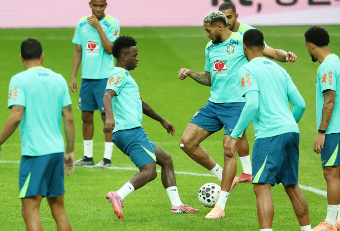 | | 브라질 축구 국가대표팀 선수들이 9일 서울월드컵경기장에서 공식 훈련을 하고 있다. 사진=연합뉴스 |