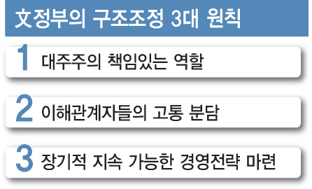 청와대 고위 관계자의 메시지에서도 읽히듯이 정부는 최근 기업 구조조정과 관련해 ‘원칙’을 고수하고 있다. 금호타이어와 STX조선해양이 법정관리 문턱까지 갔는데도 원칙은 흔들리지 않았다. 성동조선해양은 법정관리를 밟도록 했다.