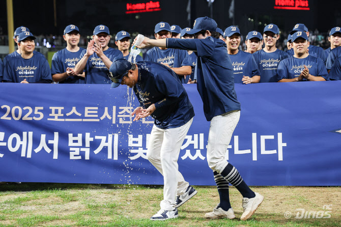 | | 6일 대구 삼성라이온즈파크에서 열린 2025 KBO 포스트시즌 와일드카드 1차전 삼성 라이온즈와 NC 다이노스의 경기. NC가 4:1로 승리후 선수들이 기뻐하고 있다. 사진=연합뉴스 |