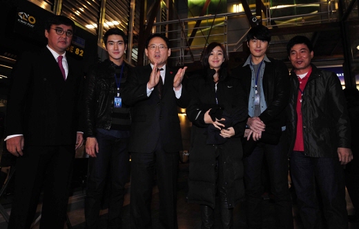유 장관은 28일 오후 경기도 안성 동아방송예술대학 종합촬영소에 마련된 `아테나` 촬영장을 방문해 현장을 둘러본 뒤 드라마 출연진과 제작진과 간담회를 했다.