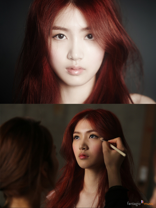 소속사 판타지오뮤직이 4일 공개한 사진에서 여름은 레드 컬러의 강렬한 헤어스타일과 또렷한 이목구비, 우윳빛 피부러 신비로운소 녀의 느낌을 자아내고 있다.