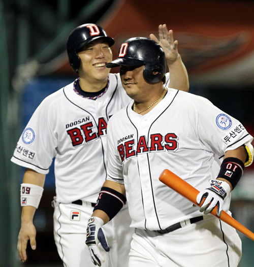 두산의 공격 본능은 여기서 멈추지 않았다. 2사 2루서 후속 타자 최준석이 박정진의 2구째 몸쪽 높은 슬라이더를 공략해 좌측 담장을 훌쩍 넘기는 투런포를 쏘아올렸다. 7-5 역전에 성공한 순간이었다. 여기에 윤석민이 1타점 적시타로 힘을 보탰다.