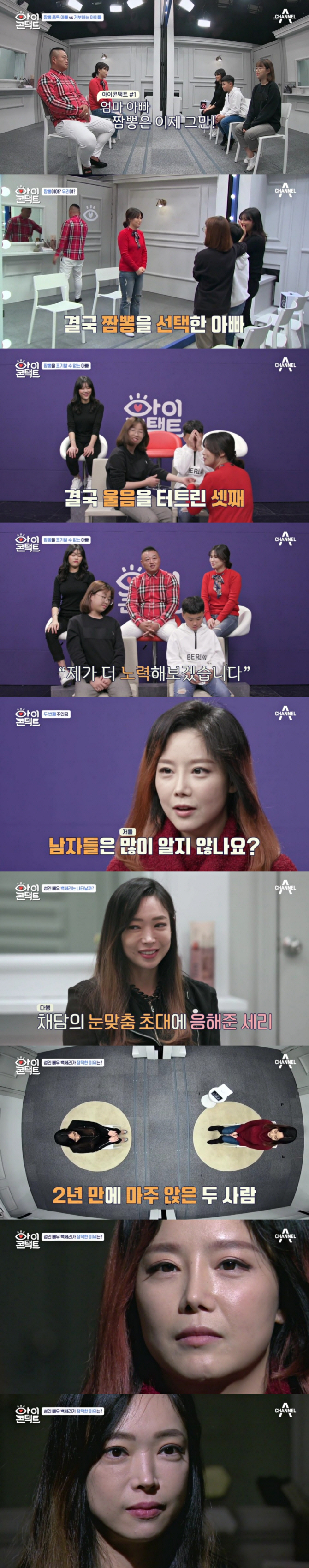 마침내 이채담과 백세리의 눈맞춤이 시작됐고, 따뜻한 이채담의 시선과 달리 백세리는 불안한 듯 굳은 표정과 눈빛을 보였다. 백세리는 “작년에 아버지가 암 진단을 받으셨다고 하셔서 모든 게 무너진 것 같았다”며 “그리고 여러 ‘악플’을 보는데, 내가 성인배우를 하지 않았으면 이런 일도 없었을 거란 생각이 들었다”고 힘들었던 이야기를 꺼냈다.