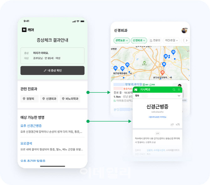 한편 네이버는 사내부속의원에서 네이버케어를 ‘사전 문진’ 형태로 고도화 진행 중이다. AI, 의학 데이터베이스를 활용해 환자가 사전에 입력한 증상 정보를 의학 용어로 변환하고, 병원 의료 정보 시스템(EMR)으로 전달해 의료진의 업무 효율화, 환자의 의료 서비스 만족도 향상에 기여하고 있다.
