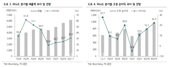 한편 미니소는 올해 매출 가이던스를 전년 대비 25% 성장으로 소폭 상향했고, 직영점 효율성 제고를 통해 중장기적으로는 영업이익률 20%를 목표로 제시했다. 영휘마트 지분 29% 인수에 따른 단기 손실(2분기 1.4억위안)은 감안하더라도, 매장 효율화와 미국 시장 성장이 전사 실적을 견인하고 있다.