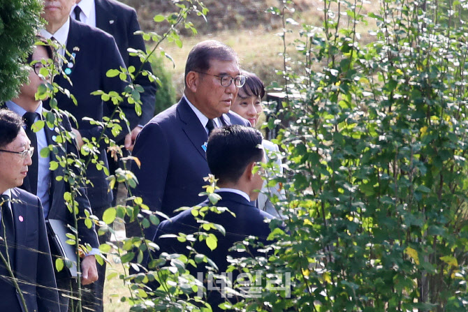 | | 이시바 시게루 일본 총리가 지난달 30일 오후 부산 금정구 시립공원묘지에서 2001년 도쿄 신오쿠보역 선로에 떨어진 일본인을 구하려다 목숨을 잃은 ‘의인’ 이수현 씨 묘지를 참배하기 위해 이동하고 있다.(사진=뉴스1) |