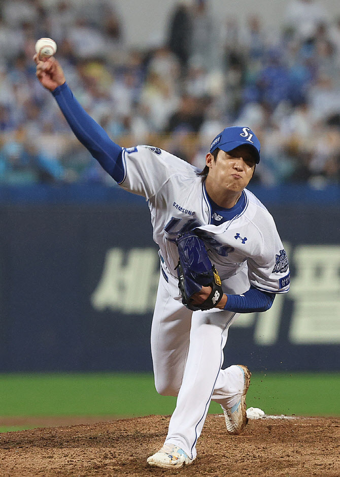 하지만 원태인은 흔들리지 않았다. 준PO 2차전에서 끝내기 홈런을 친 김성욱을 1루수 파울 플라이로 잡은데 이어 안상현을 병살타로 유도하며 위기를 넘겼다.