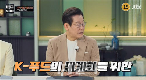 | | 지난 6일 이재명 대통령이 JTBC 예능 프로그램 ‘냉장고를 부탁해’에 출연한 모습. (사진=유튜브 갈무리) |