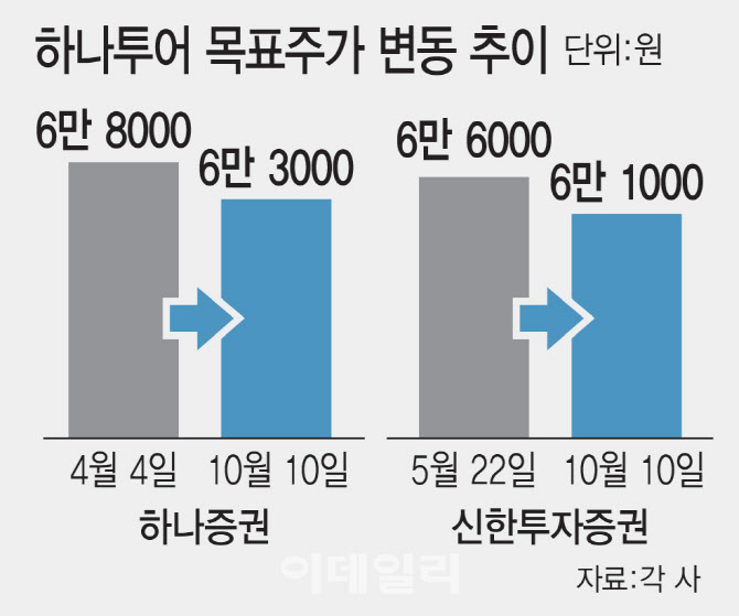 반면 여행 업종에 대한 기대치는 낮아지고 있다. 하나증권은 지난 10일 보고서에서 하나투어(039130)에 대한 목표주가를 6만 3000원으로 기존 대비 7% 하향 조정했다. 신한투자증권도 같은 날 하나투어의 목표주가를 6만 1000원으로 직전 대비 7.6% 내렸다.
