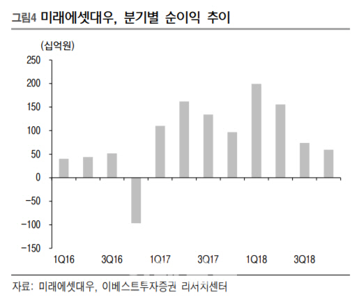 박혜진 이베스트증권 연구원은 18일 “미래에셋대우의 작년 4분기 순이익은 595억원으로 전년 동기 대비 38.6%감소할 전망”이라며 “이는 시장 전망치인 758억원을 밑도는 것”이라고 설명했다.