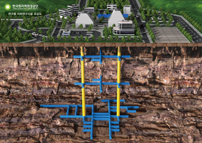 | | 고준위 방사성폐기물 최종저장시설 건설·운영을 연구하기 위한 연구용 지하연구시설 조감도. (사진=한국원자력환경공단) |