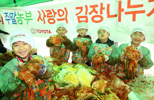한국도요타 임직원과 도요타 하이브리드 모델 고객이 참가하는 ‘도요타 주말 농부’ 70여명은 이날 직접 재배한 친환경 배추로 김장을 담가 센터측에 전달했다. 한국도요타는 올 6월부터 친환경 이미지 강화를 위해 하이브리드 모델 고객들을 대상으로 주말 농부 프로그램을 운영하고 있다.