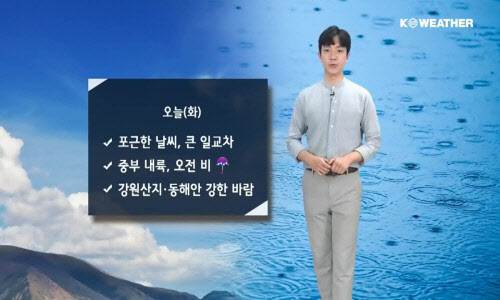 민간기상기업 케이웨더는 “오늘(17일·화) 중부지방은 북쪽을 지나는 기압골의 영향을 받다가 벗어나겠고, 남부지방은 제주도 남쪽해상을 지나는 고기압의 가장자리에 들겠다”며 “남부지방은 대체로 맑겠지만 중부지방은 흐리고 오전동안 곳곳으로 비가 오겠다”고 전했다.