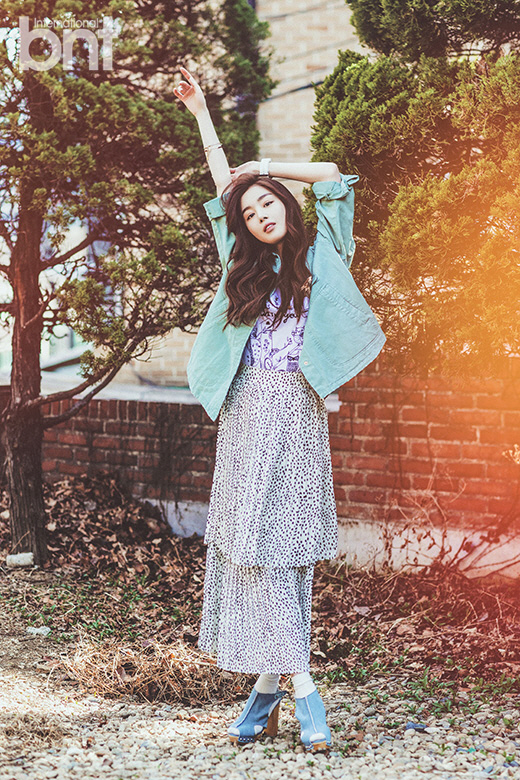 첫 번째 콘셉트에서는 나른하고 여유로운 봄날의 그를 보여줬다. 롱 스커트와 연한 카키색의야상 재킷 매치해 매니쉬한 분위기를 연출했다.