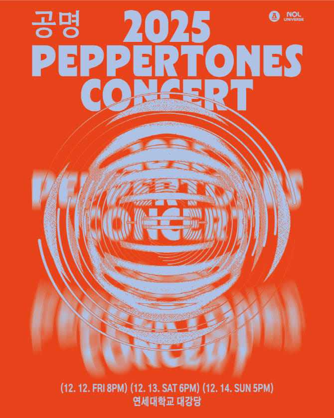 소속사 안테나에 따르면 페퍼톤스는 오는 12월 12~14일 3일간 서울 서대문구 연세대학교 신촌캠퍼스대강당에서 연말 콘서트 ‘2025 페퍼톤스 콘서트 공명’(공명)을 개최한다.