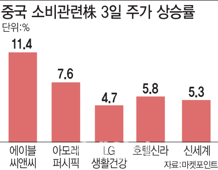 앞서 지난 3일 아모레퍼시픽(090430)은 7.6%, 호텔신라(008770)는 5.8%, 신세계(004170)는 5.3%, LG생활건강(051900)은 4.8% 등 상승하며 중국 소비재 종목들이 동반 급등했다. 아모레퍼시픽의 8월 면세점 실적이 서프라이즈(전달 대비 40% 이상 성장)를 나타낼 것이라는 기대감이 유입된 탓이다.