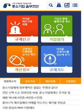 [이데일리 채상우 기자] 중소기업에 꼭 맞는 규제정보를 제공하고 불필요한 규제를 쉽게 신고할 수 있는 중소기업옴부즈만 모바일 홈페이지가 등장했다.