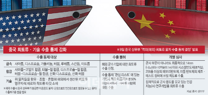 중국은 그동안 희귀 금속인 희토류에 대한 수출 통제를 실시하고 있다. 이번 조치는 추가적인 조치를 내놓은 것으로 보인다.