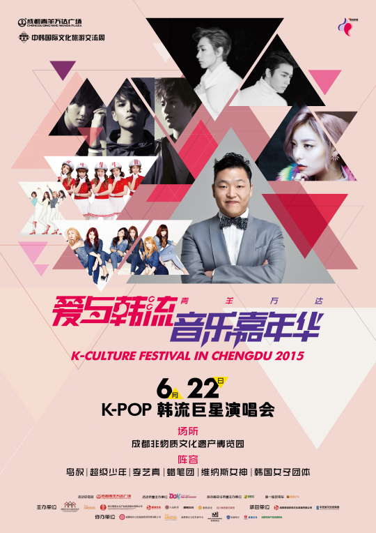 한편 ‘한류사랑문화축제’는 한국의 더그루브엔터테인먼트와 중국의 별오락문화, 성도시 문화건설상회, 사천유상문화산업투자주식회사가 공동 주최하며, 싸이(PSY), 슈퍼쥬니어, 김종국, 더원, 에일리, 지창욱 등 한국 대표 스타들과 국보급 전통 아티스트들이 대거 출연, 한국의 전통과 문화를 체험할 수 있는 대규모 페스티벌이다.