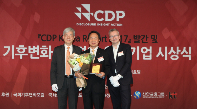 [이데일리 전상희 기자] 신한금융그룹은 27일 서울 소공동 웨스틴조선호텔에서 열린 ‘2017 CDP Korea’에서 ‘탄소경영 아너스클럽’에 선정됐다고 29일 밝혔다.