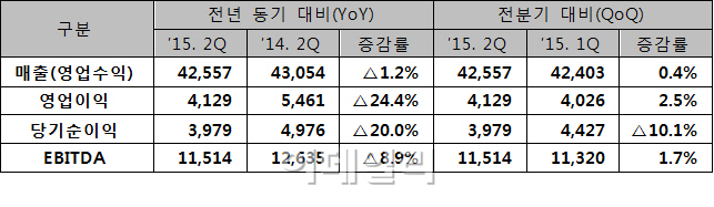 매출은 상호접속요율 인하에 따른 망접속수익 감소, 가입비 폐지 영향으로 전년 동기 대비 1.2% 감소했다. 전분기 대비로는 0.4% 증가했다. 자회사 매출 증가 영향이 컸다.