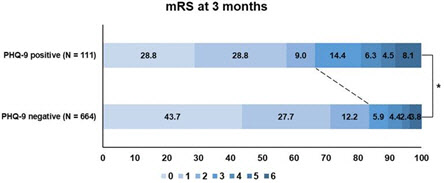 연구 결과, 뇌졸중 후 조기 우울증 환자로 분류된 PHQ-9 점수 4점 이상의 111명 가운데 33.3%가 3개월 이후 mRS 점수에서 4점 이상을 나타내며 예후가 나쁘다는 것을 확인할 수 있었다. 반면, 뇌졸중 후 조기 우울증이 없는 환자군 664명 가운데 3개월 후의 mRS 점수가 4점 이상인 비율은 16.5%에 불과했다. 또한, 이러한 경향은 나이, 성별, 악성 종양 동반 여부, 초기 신경학적 손상 악화의 동반 여부 등이 다른 다양한 환자군에서도 일관되게 관찰됐다.