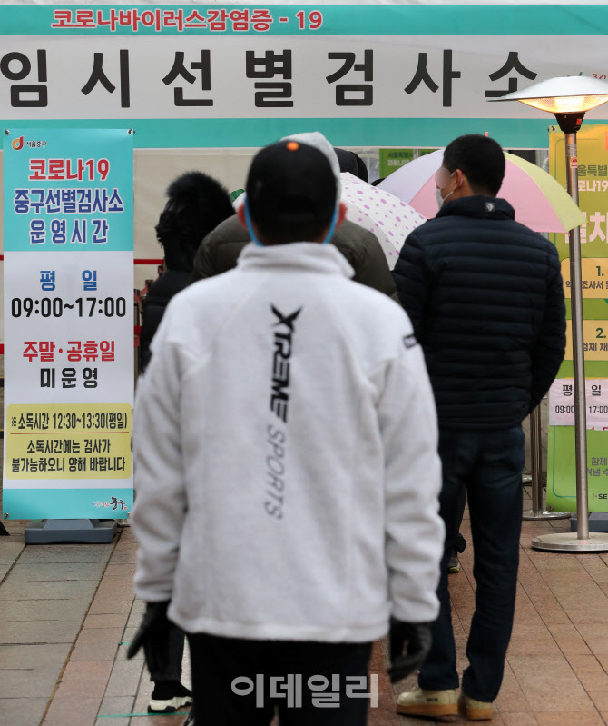 [이데일리 방인권 기자] 전 세계 신종 코로나바이러스 감염증(코로나19) 양성 판정을 받은 누적 확진자가 1억 명을 넘어선 26일 오전 서울광장에 마련된 임시선별검사소를 찾은 시민들이 검사를 받기 위해 줄을 서고 있다.