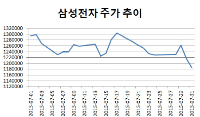 에프앤가이드에 따르면 삼성전자의 3분기 영업이익 전망치는 지난 5월 말 7조6477억원이었던 것이 6월 말에는 7조4548억원으로 내려왔고, 지난달 말 기준으로는 6조9207억원까지 하향되면서 7조원을 넘지 못할 전망이다.