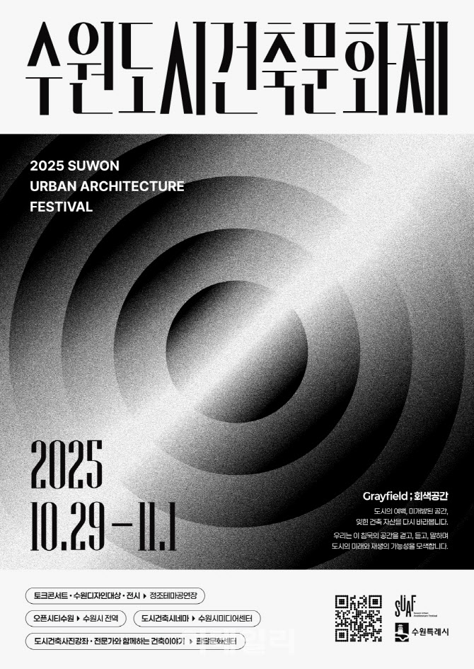 수원시 도시디자인단 관계자는 “2025 수원도시건축문화제가 전통과 현대가 조화되는 도시 정체성을 확장하고, 수원의 건축문화가 한 단계 성장하는 계기가 되길 바란다”며 “많은 시민이 문화제에 참여해 도시를 새롭게 바라보고, 평소 접근하기 어려웠던 공간을 탐방하길 바란다”고 말했다.