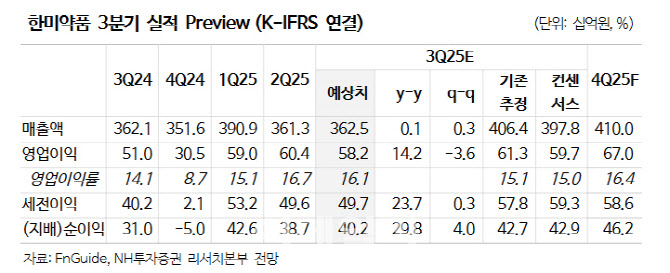 한승연 NH투자증권 연구원은 “2026년까지 핵심 동인은 실적보다 신약 R&D 모멘텀”이라며 “3분기 실적은 부진하지만 4분기 글로벌 비만 학회 데이터가 주목된다”고 밝혔다.
