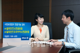 [이데일리 신상건 기자] 알리안츠생명은 ‘무배당 알리안츠순(純) 연금보험’과 ‘무배당 알리안츠우리아이순(純)연금보험’을 26일 선보였다.