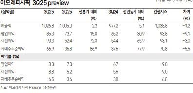 이가영 삼성증권 연구원은 “인수 브랜드를 제외하고 아모레퍼시픽 본사의 최대 매출 성장 동력인 라네즈의 미국·유럽 성장세는 여전히 높게 유지 중”이라며 “3분기 본사 미국 매출 성장률은 전분기와 유사한 12%가 예상된다”고 분석했다.