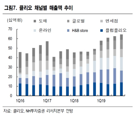 조미진 NH투자증권 연구원은 “2분기 연결기준 매출액은 전년 동기 대비 31.3% 증가한 609억, 영업이익은 50억원으로 전년 대비 흑자전환했따”며 “이는 온라인, 면세점 등의 고성장이 전체 매출 증가를 견인했다”고 분석했다.