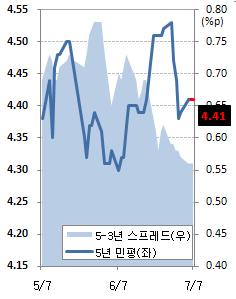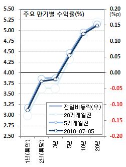 금통위에서 금리를 동결하더라도 지난번 금통위에서와 같은 멘트가 나온다면 플래트닝이 이어질 것이고 글로벌 경제의 불확실성이나 더블딥 가능성을 언급한다면 스티프닝을 보일 것이란 전망이다.