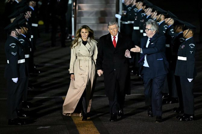 | | 도널드 트럼프 미국 대통령 부부가 영국 국빈 방문 첫날인 16일(현지시간) 영국 런던 스탠스테드 공항에 도착했다.(사진=AFP) |