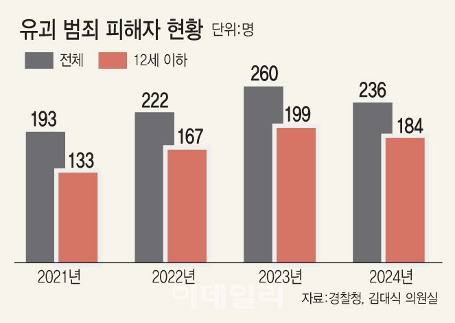 14일 국회 교육위원회 김대식 국민의힘 의원이 경찰청으로부터 제출받은 ‘최근 5년(2021~2025년)간 미성년자 약취·유인 범죄 현황’을 분석한 결과 매년 200건 정도의 유괴 사건이 발생하고 있다.