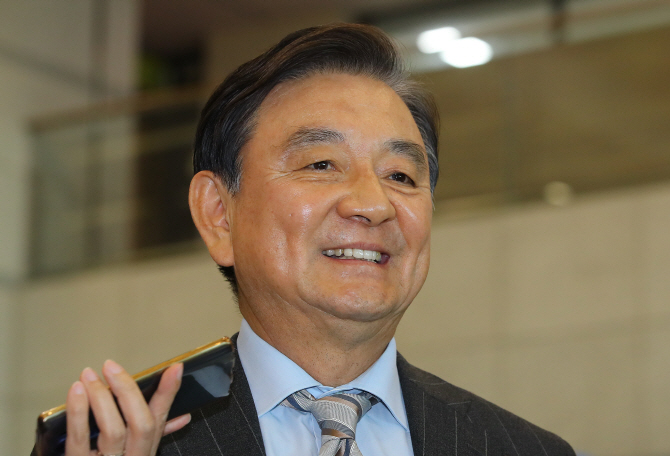 | | 문재인 대통령의 대미 특사 자격으로 미국 워싱턴을 방문했던 홍석현 한반도 포럼 이사장이 5월 21일 오후 인천공항을 통해 귀국한 뒤 인터뷰를 하고 있다. 홍 특사는 이날 대통령 통일·외교·안보 특별보좌관으로 임명됐다. (사진=연합뉴스) |