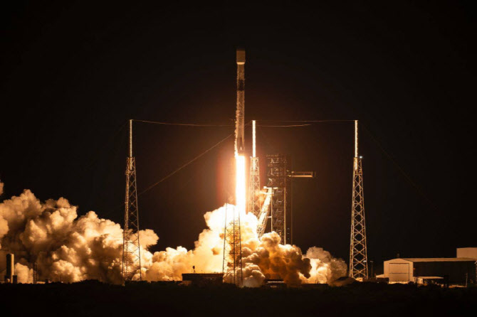 | | 미국 현지시간 2일(한국시간 2일) 미국 플로리다주 케이프 커너베럴 우주군기지에서 대한민국 정찰위성 5호기가 실린 스페이스X사의 팰컨-9 발사체가 발사되고 있다.(사진=스페이스X.) |