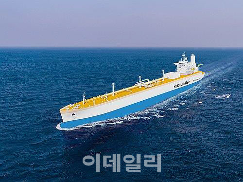 | | 한화오션이 개발한 암모니아 연료 추진 암모니아 운반선 조감도. (사진=한화오션) |