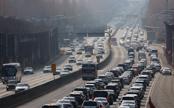 | | 설날인 지난 1월 29일 오전 서울 서초구 잠원IC 인근 경부고속도로 상(왼쪽)·하행선 위로 차량이 지나고 있다.(사진=연합뉴스) |