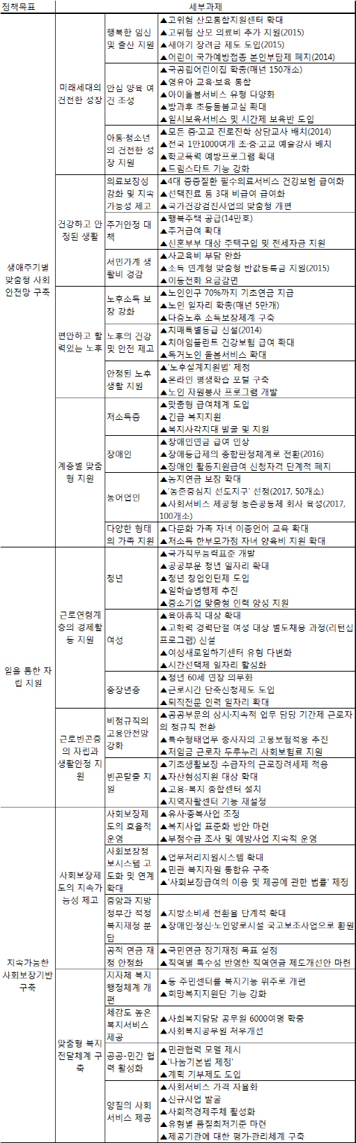 또 노후소득 보장 강화 등 편안한 노후와 저소득층·장애인·농어업인 등 다양한 계층에게 맞춤형 지원을 제공하는 내용도 담고 있다.