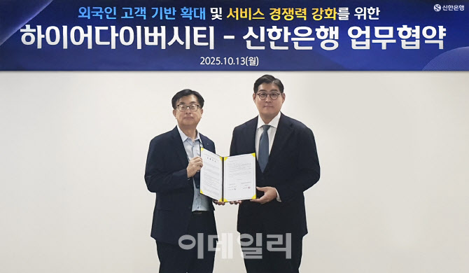 [이데일리 양희동 기자] 신한은행은 지난 13일 서울시 중구 소재 신한은행 본점에서 외국인 유학생 전용 플랫폼 기업인 ㈜하이어다이버시티와 외국인 고객 금융서비스 강화를 위한 업무협약을 체결했다고 14일 밝혔다. ㈜하이어다이버시티는 국내 거주 외국인 유학생들이 한국에서 체류하는데 필요한 행정서비스를 제공하는 플랫폼 기업이다. ‘하이어 비자(HireVisa)’ 앱을 통해 외국인등록증 발급, 비자연장, 체류자격 및 거주지 변경 등 다양한 행정절차를 비대면으로 지원하고 있다.